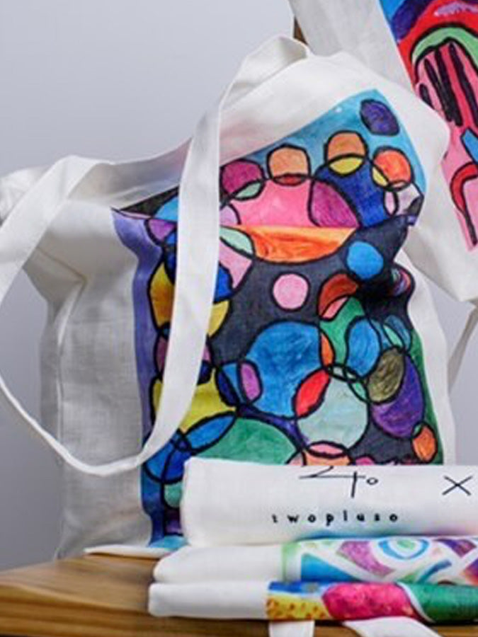 twopluso pledge to donate all profits from the sales of the “Colours of Life” tote bags to TOUCH Community Services. These linen bags feature four unique interpretations and vibrant artworks by special needs artists in Singapore.