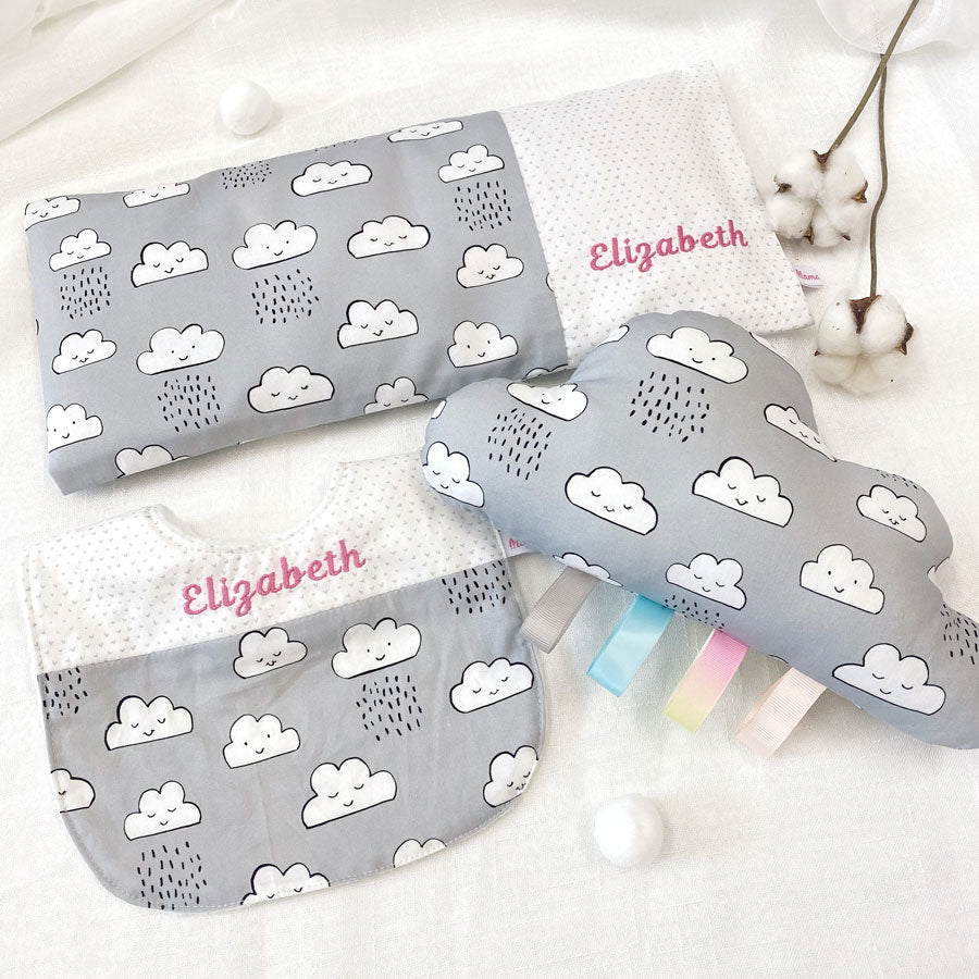 1. Beanie pillow + Name (Filled with naturally dried buckwheat husks, measures 15"x6". Pillow weighs about 250grams)